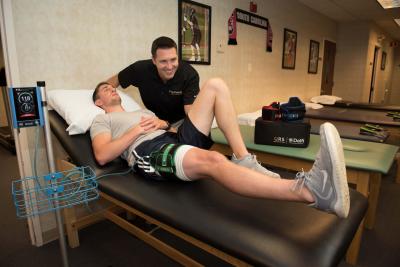 Catholic Health sports therapists use PBFR with athletes recovering from a muscle injury or surgery to help shorten recovery time. Because PBFR may also reduce the impact of the body’s natural scarring mechanism and decrease muscle loss, it has the potential to benefit athletes who fail to use a muscle or use a muscle significantly less following injury or surgery.