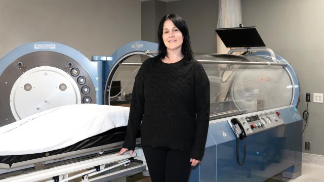 HBO therapy increases oxygen flow to the diseased blood vessels, thereby stimulating the growth of new capillaries to stabilize and heal the area. This is done by entering a pressurized glass chamber for two hours a day, five days a week, and breathing in pure, medical-grade oxygen. Though she admits she was initially unsure about the process, Dawn now looks forward to her downtime every day. “The staff makes me feel so comfortable," she said. "They were so good with me even when I was nervous.”